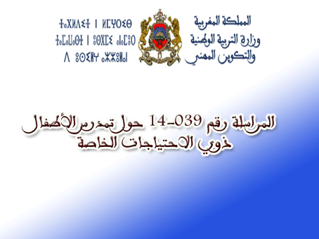 في ما يلي  المراسلة رقم 039-14 حول تمدرس الأطفال ذوي الاحتياجات الخاصة