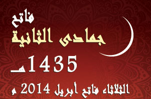 وعليه فإن فاتح شهر جمادى الثانية 1435هـ يكون هو يوم الثلاثاء فاتح أبريل 2014.