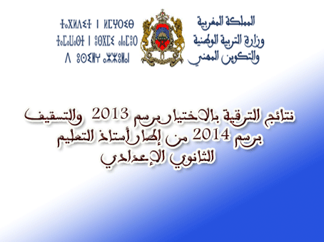 نتائج الترقية بالاختيار برسم 2013 والتسقيف برسم 2014 من إطار أستاذ التعليم الثانوي الإعدادي